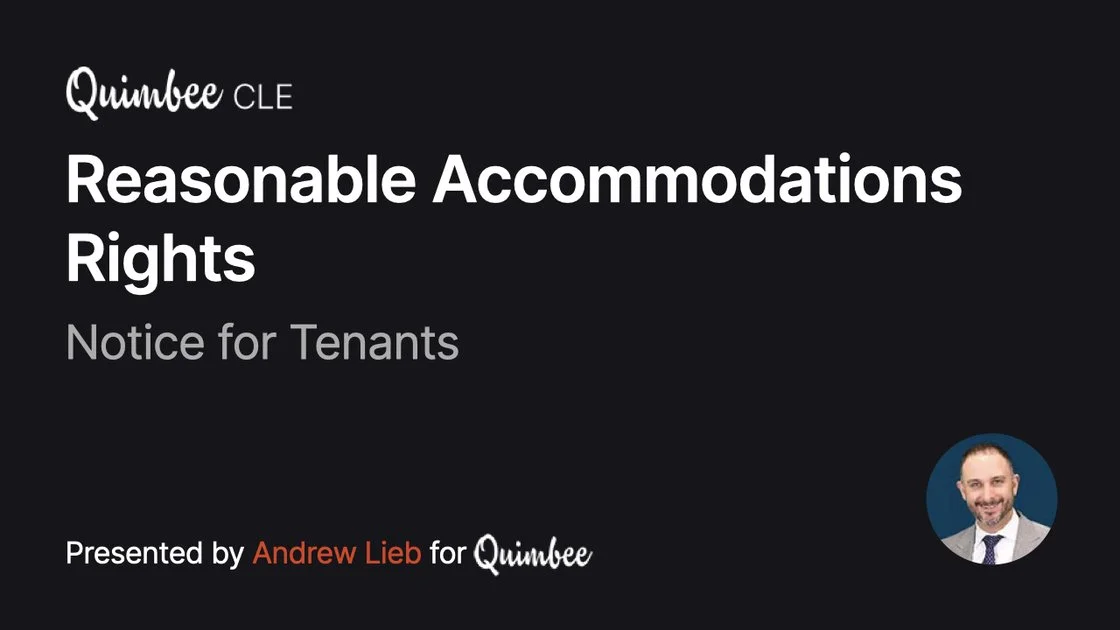 Disabled tenants have rights to reasonable accommodations throughout the United States. Failing to honor those rights can quickly cause a landlord, property manager, and real estate broker to face a six figure lawsuit. Now, the State of New York has stepped it up a notch by requiring landlords, property managers, and real estate brokers to provide a written notice to all tenants and prospective tenants about their rights. The notice explains which accommodations are available under law, how to request an accommodation, and how to bring a claim for discrimination if an accommmodation is wrongfully denied. This course will get you up to speed with the statutory and regulatory framework under which the NYS notice exists while offering you a full compliance protocol for your clients to follow. It will also show you how to leverage a defendant's failure to give the notice in a plaintiff's failure-to-accommodate discrimination case so that you can properly advise tenants who have faced discrimination.